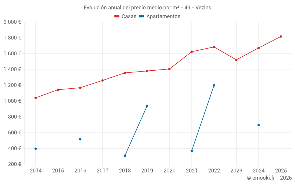 ¿Cuál es el precio por m2 de las casas en Vezins?