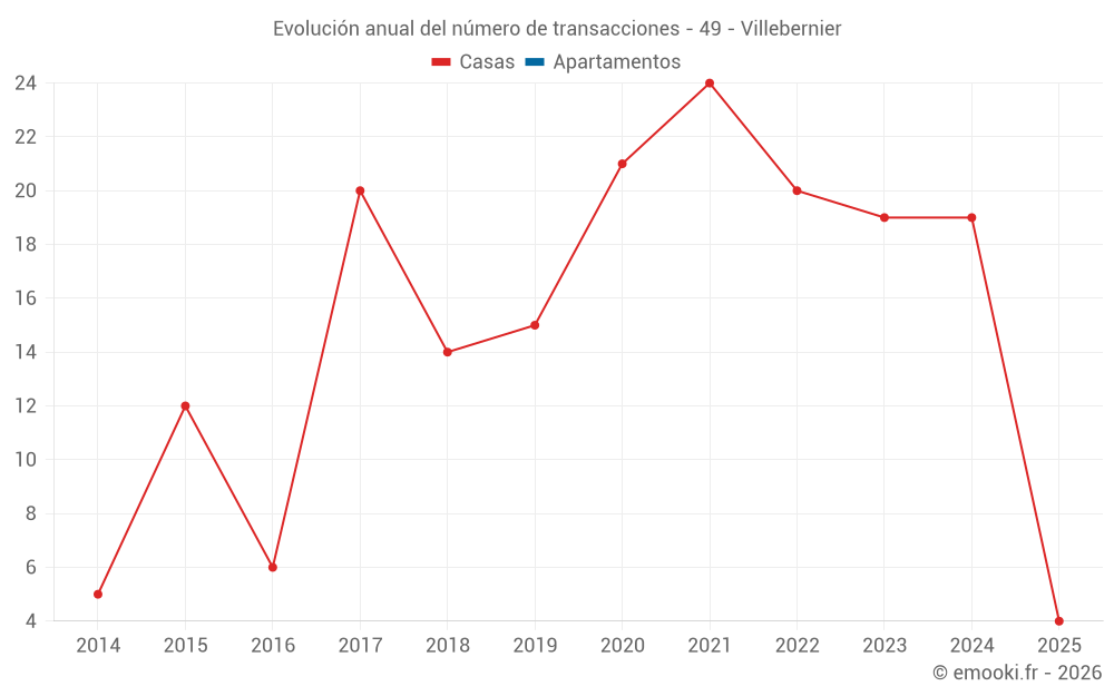 El precio mediano en las 16 transacciones de casas de los últimos 12 meses en la comuna de Villebernier fue de 1 652 € por metro cuadrado para un valor patrimonial medio de 144 500 €. Durante este período el 60% de las transacciones estuvieron entre 891 y 2 164 € por metro cuadrado (del 2º al 8º decil).