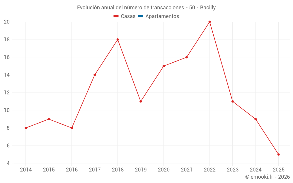 El precio mediano en las 22 transacciones de casas de los últimos 24 meses en la comuna de Bacilly fue de 1 813 € por metro cuadrado para un valor patrimonial medio de 206 735 €. Durante este período el 60% de las transacciones estuvieron entre 1 142 y 2 385 € por metro cuadrado (del 2º al 8º decil).