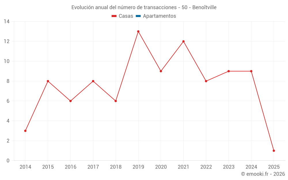 El precio mediano en las 15 transacciones de casas de los últimos 24 meses en la comuna de Benoîtville fue de 1 963 € por metro cuadrado para un valor patrimonial medio de 170 000 €. Durante este período el 60% de las transacciones estuvieron entre 1 131 y 2 267 € por metro cuadrado (del 2º al 8º decil).