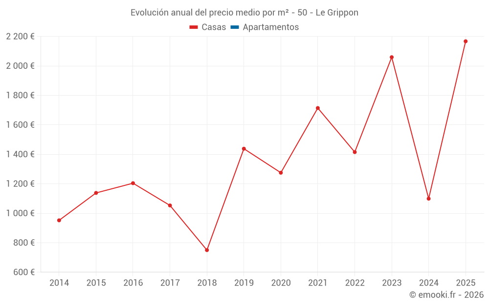 Evolución del precio medio por m² de las casas