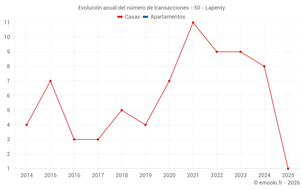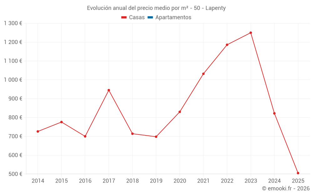 El precio mediano en las 14 transacciones de casas de los últimos 24 meses en la comuna de Lapenty fue de 1 219 € por metro cuadrado para un valor patrimonial medio de 85 000 €. Durante este período el 60% de las transacciones estuvieron entre 654 y 1 535 € por metro cuadrado (del 2º al 8º decil).