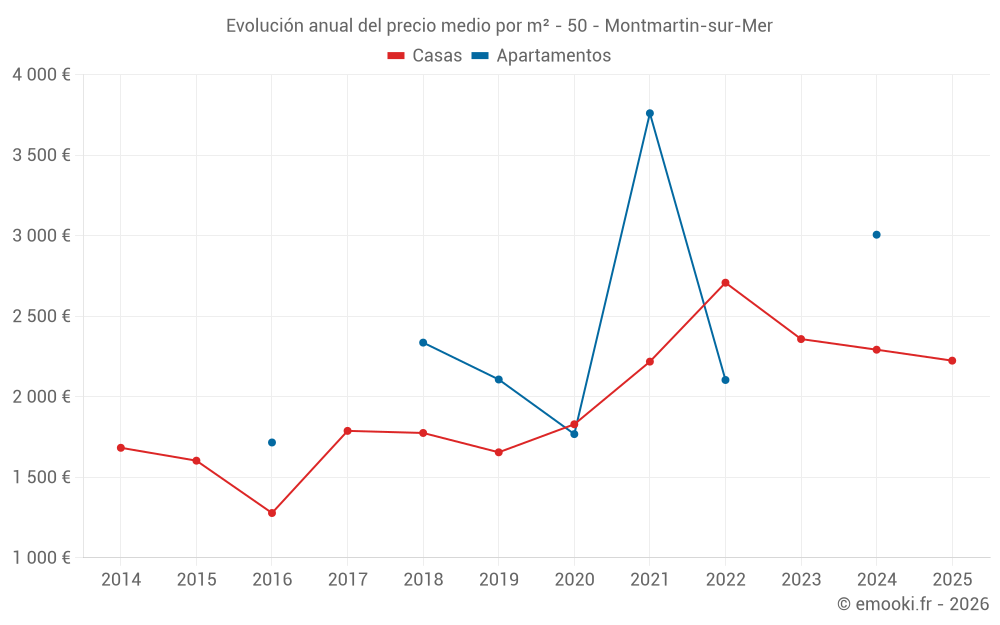 ¿Cuál es el precio por m2 de las casas en Montmartin-sur-Mer?