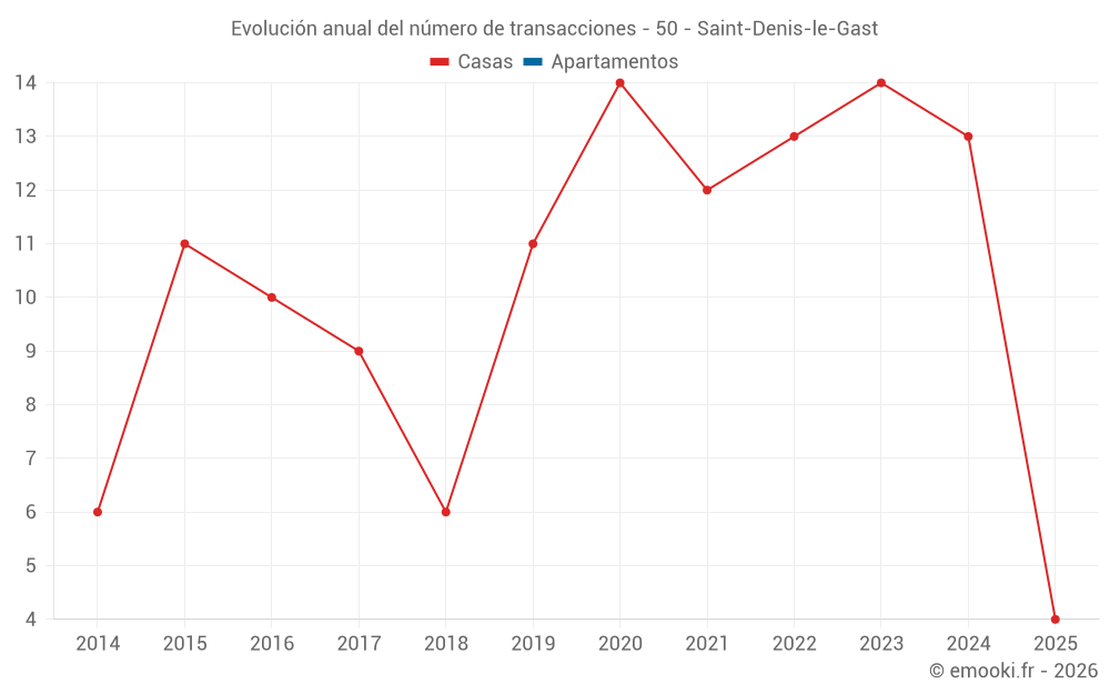 El precio mediano en las 25 transacciones de casas de los últimos 24 meses en la comuna de Saint-Denis-le-Gast fue de 1 164 € por metro cuadrado para un valor patrimonial medio de 130 000 €. Durante este período el 60% de las transacciones estuvieron entre 901 y 1 581 € por metro cuadrado (del 2º al 8º decil).