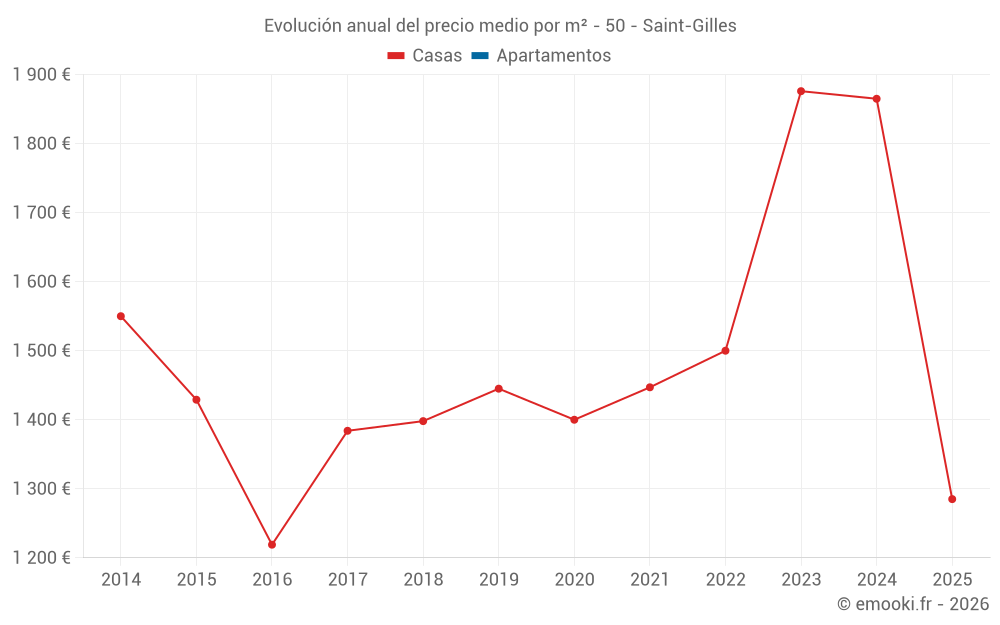El precio mediano en las 14 transacciones de casas de los últimos 24 meses en la comuna de Saint-Gilles fue de 1 848 € por metro cuadrado para un valor patrimonial medio de 196 650 €. Durante este período el 60% de las transacciones estuvieron entre 1 246 y 2 438 € por metro cuadrado (del 2º al 8º decil).