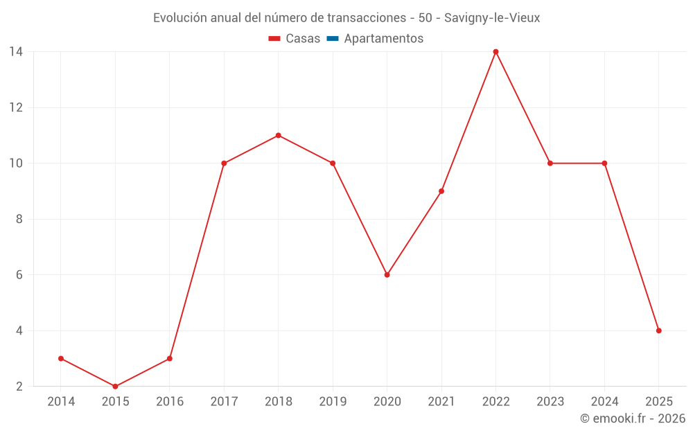 El precio mediano en las 19 transacciones de casas de los últimos 24 meses en la comuna de Savigny-le-Vieux fue de 1 295 € por metro cuadrado para un valor patrimonial medio de 120 000 €. Durante este período el 60% de las transacciones estuvieron entre 854 y 1 853 € por metro cuadrado (del 2º al 8º decil).