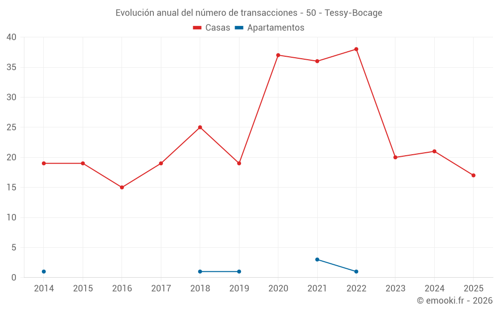 El precio mediano en las 27 transacciones de casas de los últimos 12 meses en la comuna de Tessy-Bocage fue de 1 169 € por metro cuadrado para un valor patrimonial medio de 116 000 €. Durante este período el 60% de las transacciones estuvieron entre 600 y 1 858 € por metro cuadrado (del 2º al 8º decil).