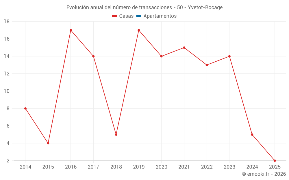 El precio mediano en las 17 transacciones de casas de los últimos 24 meses en la comuna de Yvetot-Bocage fue de 1 974 € por metro cuadrado para un valor patrimonial medio de 220 000 €. Durante este período el 60% de las transacciones estuvieron entre 1 707 y 2 321 € por metro cuadrado (del 2º al 8º decil).