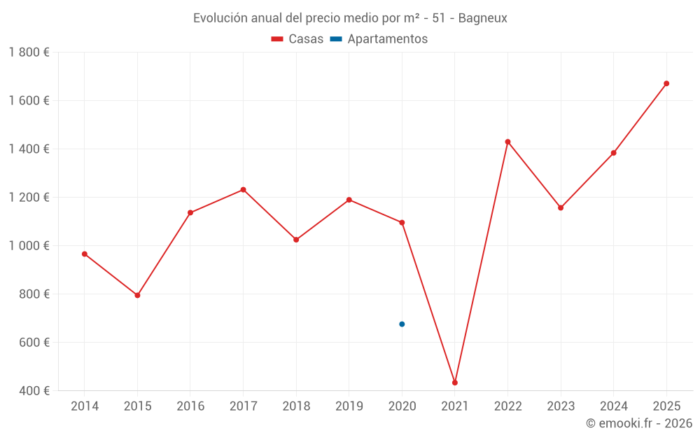 Evolución del precio medio por m² de las casas
