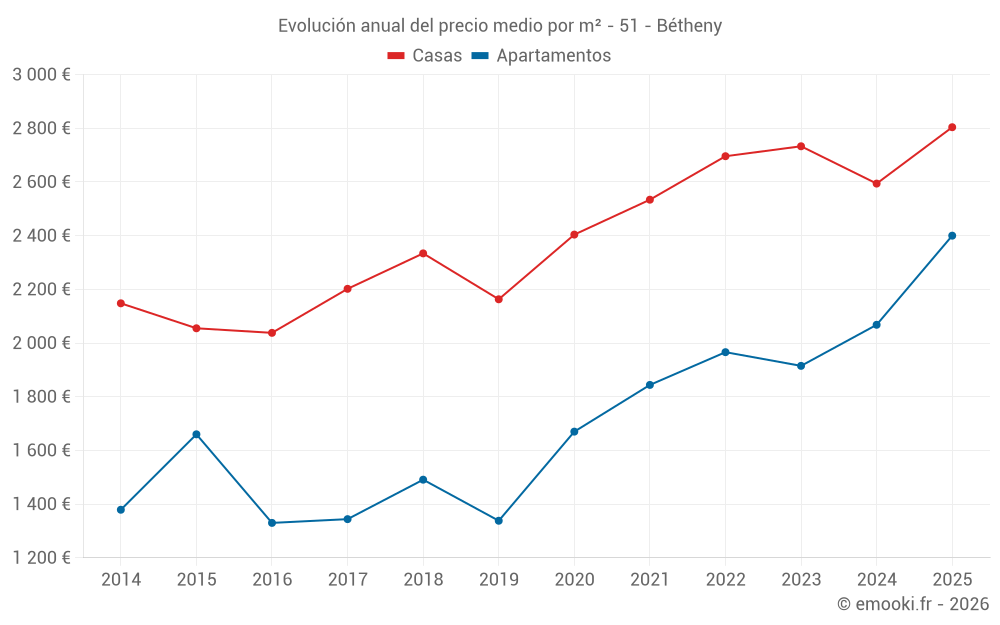 ¿Cuál es el precio por m2 de las casas en Bétheny?