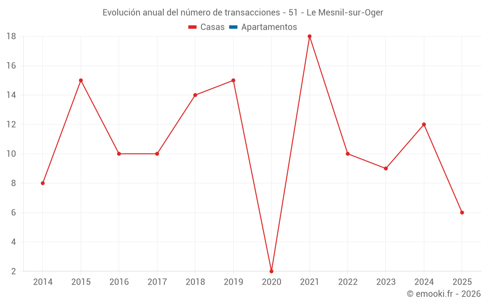 El precio mediano en las 24 transacciones de casas de los últimos 24 meses en la comuna de Le Mesnil-sur-Oger fue de 1 290 € por metro cuadrado para un valor patrimonial medio de 157 050 €. Durante este período el 60% de las transacciones estuvieron entre 847 y 1 998 € por metro cuadrado (del 2º al 8º decil).