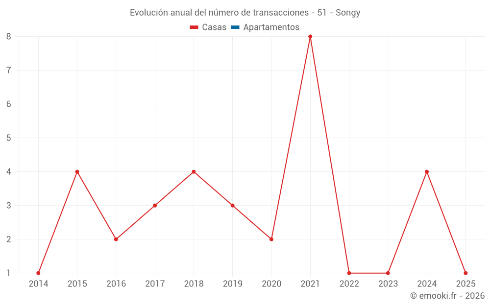 Mapa de precios de la vivienda en la comuna de Songy, elija una sección para ver las transacciones por parcela.