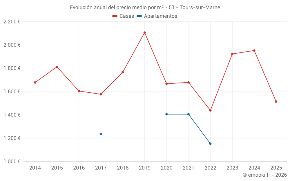 ¿Cuál es el precio por m2 de las casas en Tours-sur-Marne?