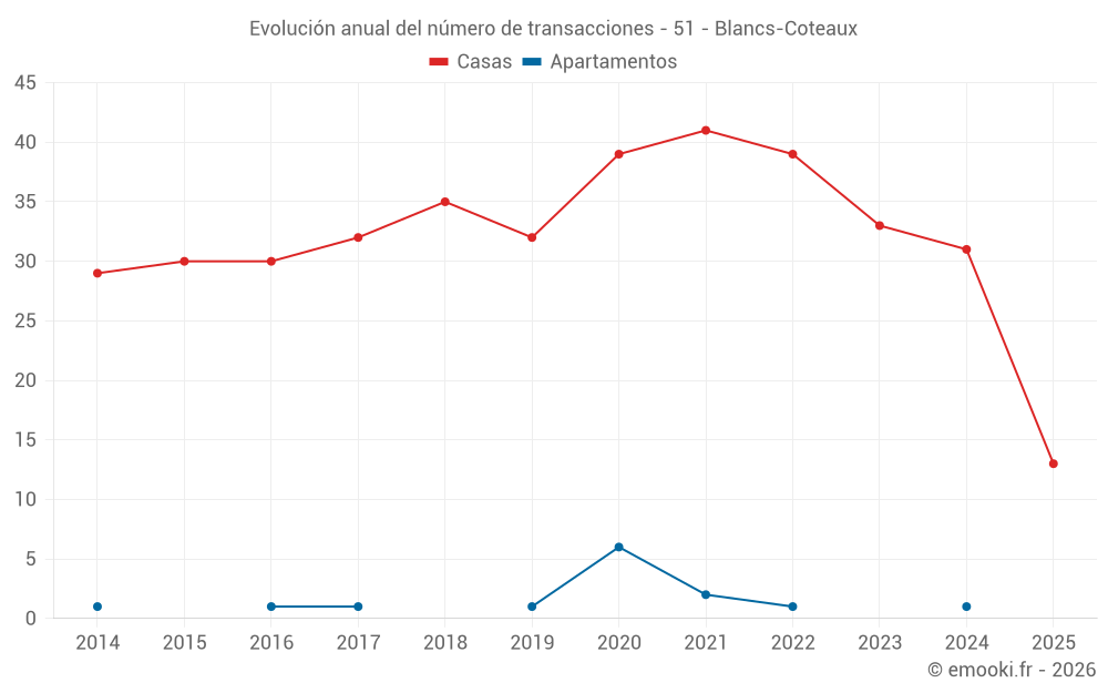 El precio mediano en las 26 transacciones de casas de los últimos 12 meses en la comuna de Blancs-Coteaux fue de 1 377 € por metro cuadrado para un valor patrimonial medio de 141 000 €. Durante este período el 60% de las transacciones estuvieron entre 903 y 2 000 € por metro cuadrado (del 2º al 8º decil).