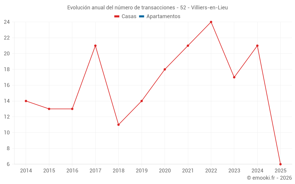 El precio mediano en las 19 transacciones de casas de los últimos 12 meses en la comuna de Villiers-en-Lieu fue de 1 417 € por metro cuadrado para un valor patrimonial medio de 143 000 €. Durante este período el 60% de las transacciones estuvieron entre 1 000 y 1 790 € por metro cuadrado (del 2º al 8º decil).