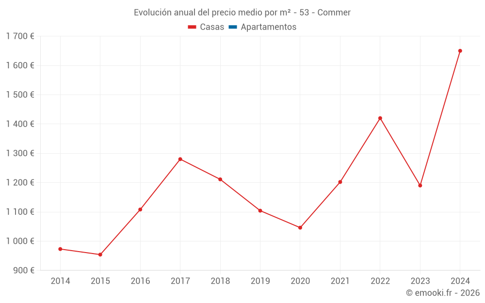 ¿Cuál es el precio por m2 de las casas en Commer?