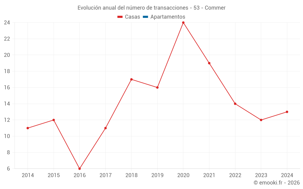 El precio mediano en las 16 transacciones de casas de los últimos 24 meses en la comuna de Commer fue de 1 768 € por metro cuadrado para un valor patrimonial medio de 168 950 €. Durante este período el 60% de las transacciones estuvieron entre 1 494 y 2 112 € por metro cuadrado (del 2º al 8º decil).