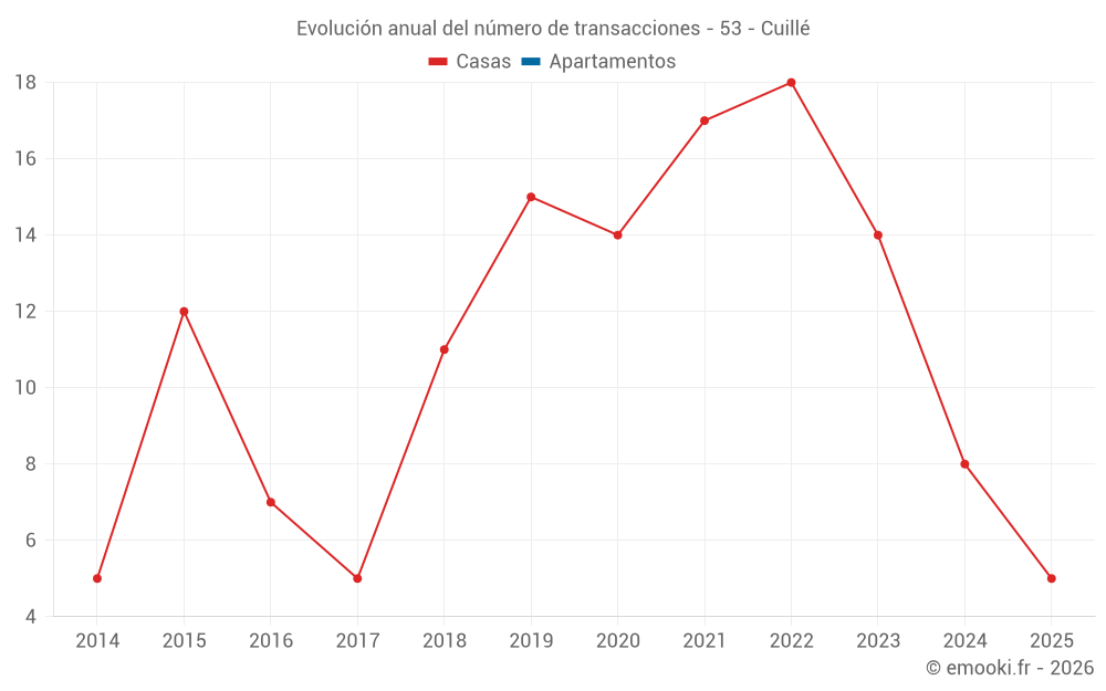 El precio mediano en las 21 transacciones de casas de los últimos 24 meses en la comuna de Cuillé fue de 1 412 € por metro cuadrado para un valor patrimonial medio de 130 000 €. Durante este período el 60% de las transacciones estuvieron entre 842 y 1 842 € por metro cuadrado (del 2º al 8º decil).