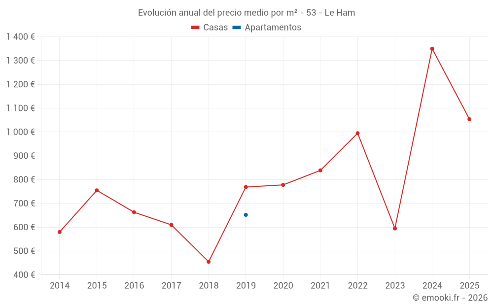 El precio mediano en las 16 transacciones de casas de los últimos 24 meses en la comuna de Le Ham fue de 1 114 € por metro cuadrado para un valor patrimonial medio de 53 850 €. Durante este período el 60% de las transacciones estuvieron entre 417 y 1 421 € por metro cuadrado (del 2º al 8º decil).