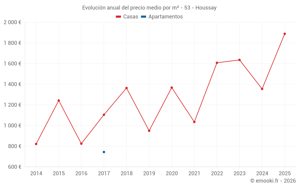 Evolución del precio medio por m² de las casas
