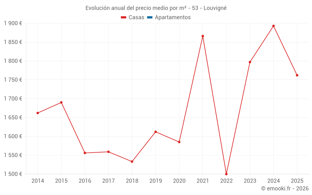¿Cuál es el precio por m2 de las casas en Louvigné?