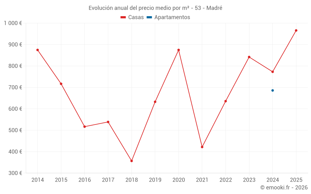 Evolución del precio medio por m² de las casas