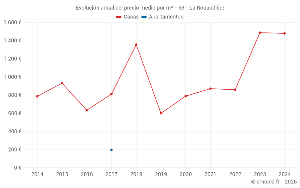 Mapa de precios de la vivienda en la comuna de La Rouaudière, elija una sección para ver las transacciones por parcela.