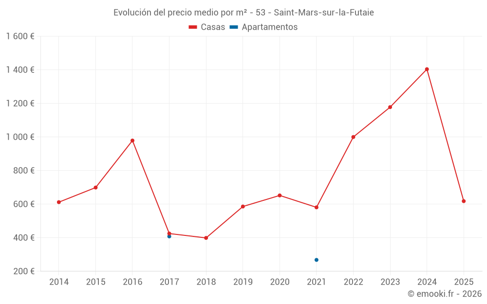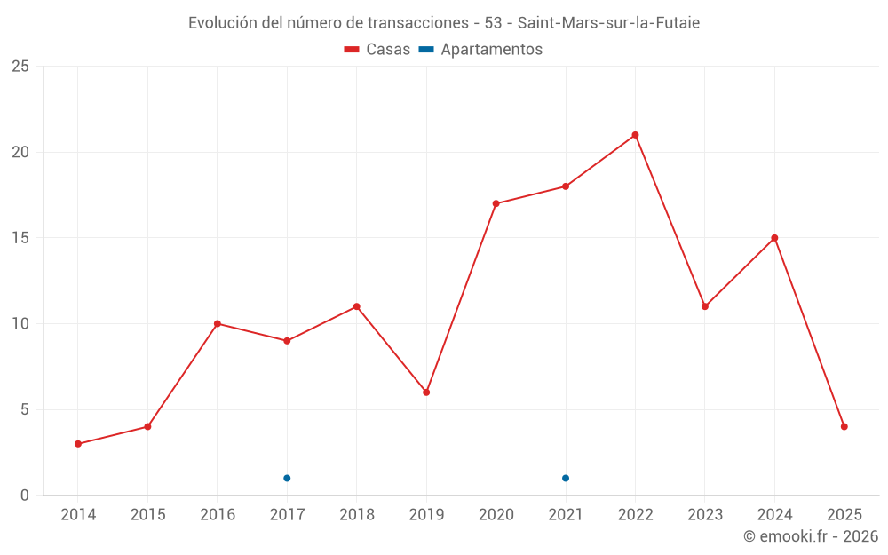Mapa de precios de la vivienda en la comuna de Saint-Mars-sur-la-Futaie, elija una sección para ver las transacciones por parcela.