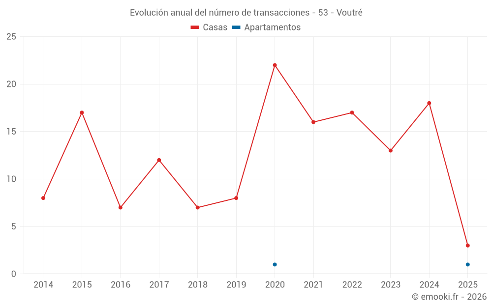 El precio mediano en las 28 transacciones de casas de los últimos 24 meses en la comuna de Voutré fue de 972 € por metro cuadrado para un valor patrimonial medio de 77 500 €. Durante este período el 60% de las transacciones estuvieron entre 302 y 1 336 € por metro cuadrado (del 2º al 8º decil).