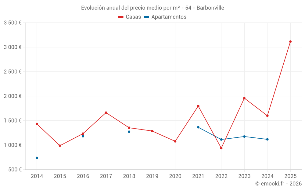 Evolución del precio medio por m² de las casas
