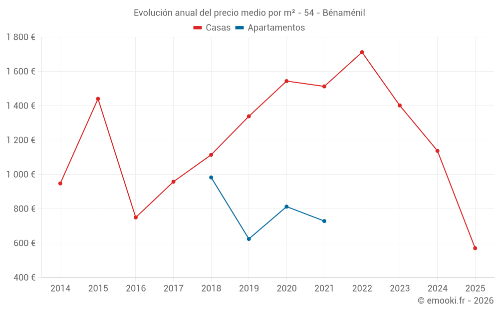 Evolución del precio medio por m² de las casas