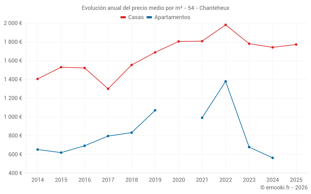 ¿Cuál es el precio por m2 de las casas en Chanteheux?