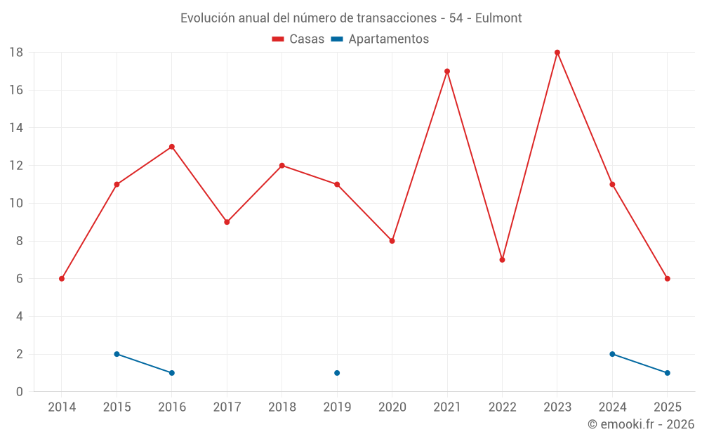 El precio mediano en las 25 transacciones de casas de los últimos 24 meses en la comuna de Eulmont fue de 2 011 € por metro cuadrado para un valor patrimonial medio de 316 100 €. Durante este período el 60% de las transacciones estuvieron entre 1 378 y 2 579 € por metro cuadrado (del 2º al 8º decil).