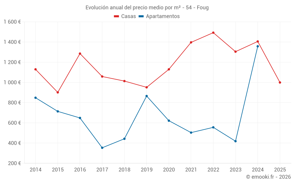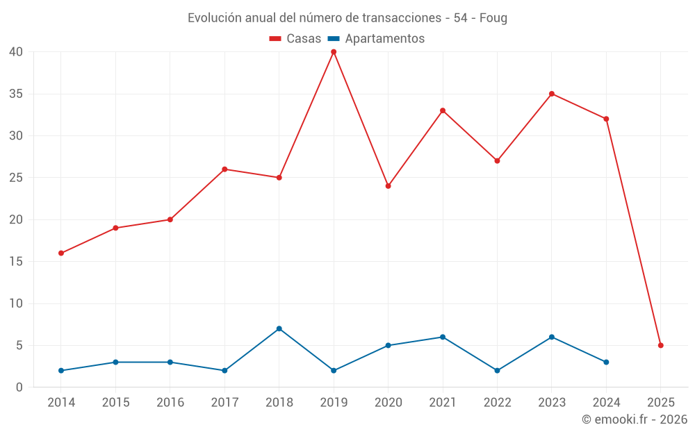El precio mediano en las 25 transacciones de casas de los últimos 12 meses en la comuna de Foug fue de 1 467 € por metro cuadrado para un valor patrimonial medio de 130 000 €. Durante este período el 60% de las transacciones estuvieron entre 815 y 1 881 € por metro cuadrado (del 2º al 8º decil).