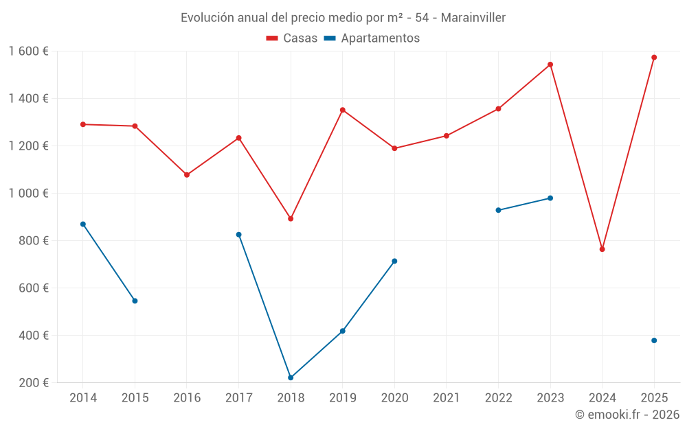 El precio mediano en las 17 transacciones de casas de los últimos 24 meses en la comuna de Marainviller fue de 1 004 € por metro cuadrado para un valor patrimonial medio de 120 000 €. Durante este período el 60% de las transacciones estuvieron entre 705 y 1 782 € por metro cuadrado (del 2º al 8º decil).