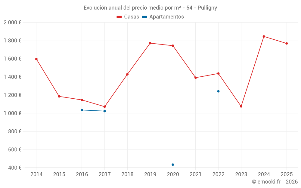 ¿Cuál es el precio por m2 de las casas en Pulligny?