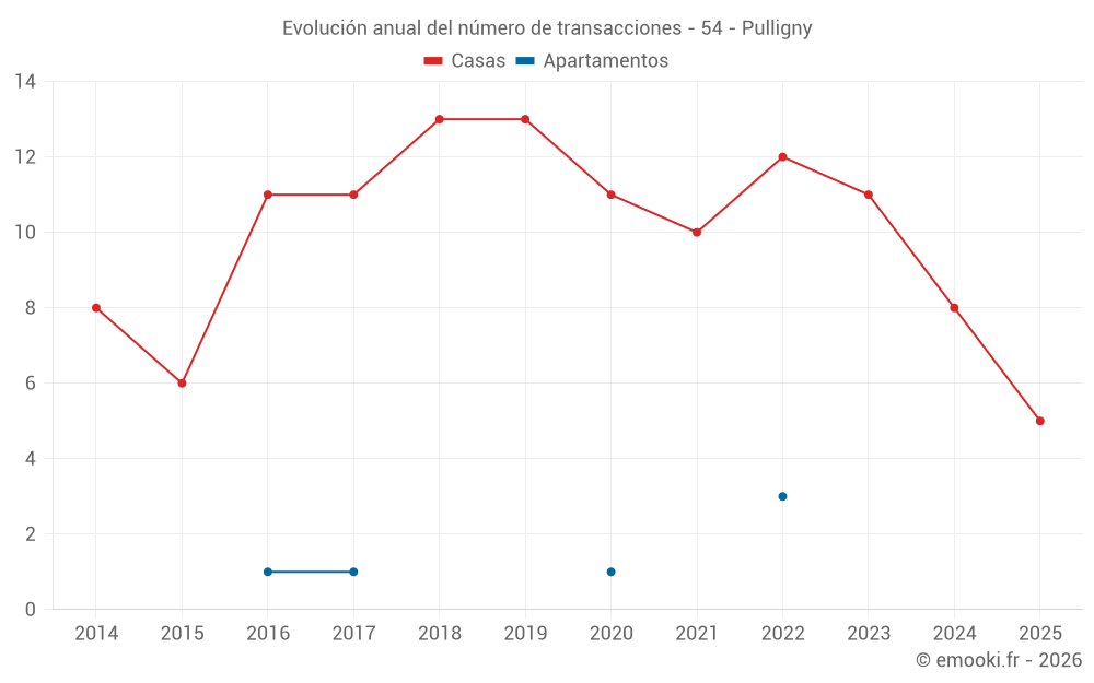 El precio mediano en las 18 transacciones de casas de los últimos 24 meses en la comuna de Pulligny fue de 1 752 € por metro cuadrado para un valor patrimonial medio de 122 500 €. Durante este período el 60% de las transacciones estuvieron entre 945 y 2 097 € por metro cuadrado (del 2º al 8º decil).