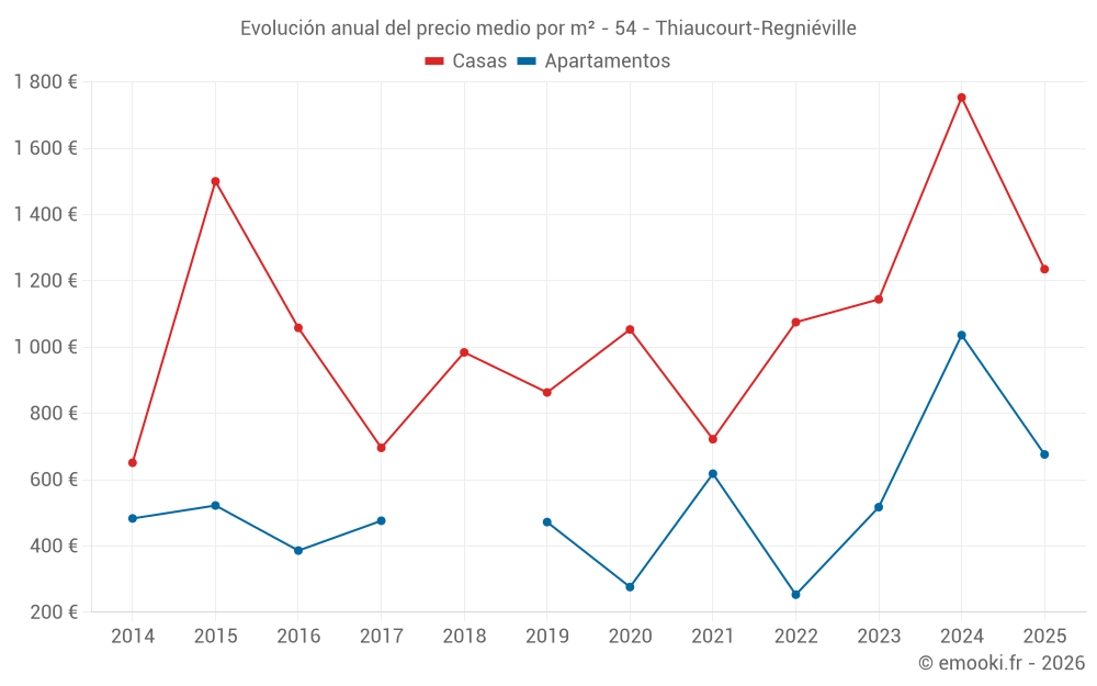 ¿Cuál es el precio por m2 de las casas en Thiaucourt-Regniéville?