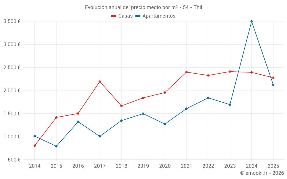 ¿Cuál es el precio por m2 de las casas en Thil?