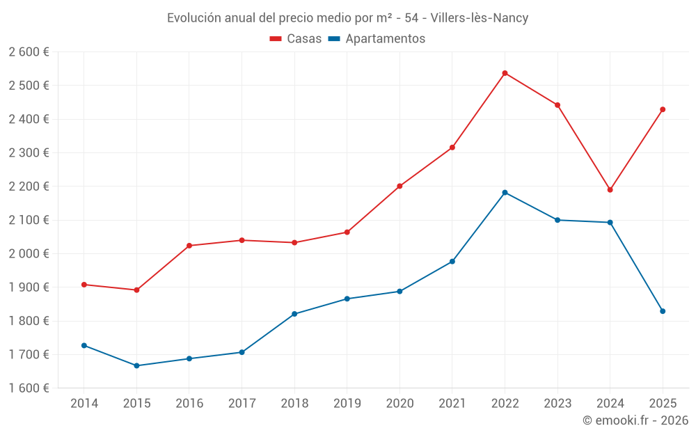 ¿Cuál es el precio por m2 de las casas en Villers-lès-Nancy?