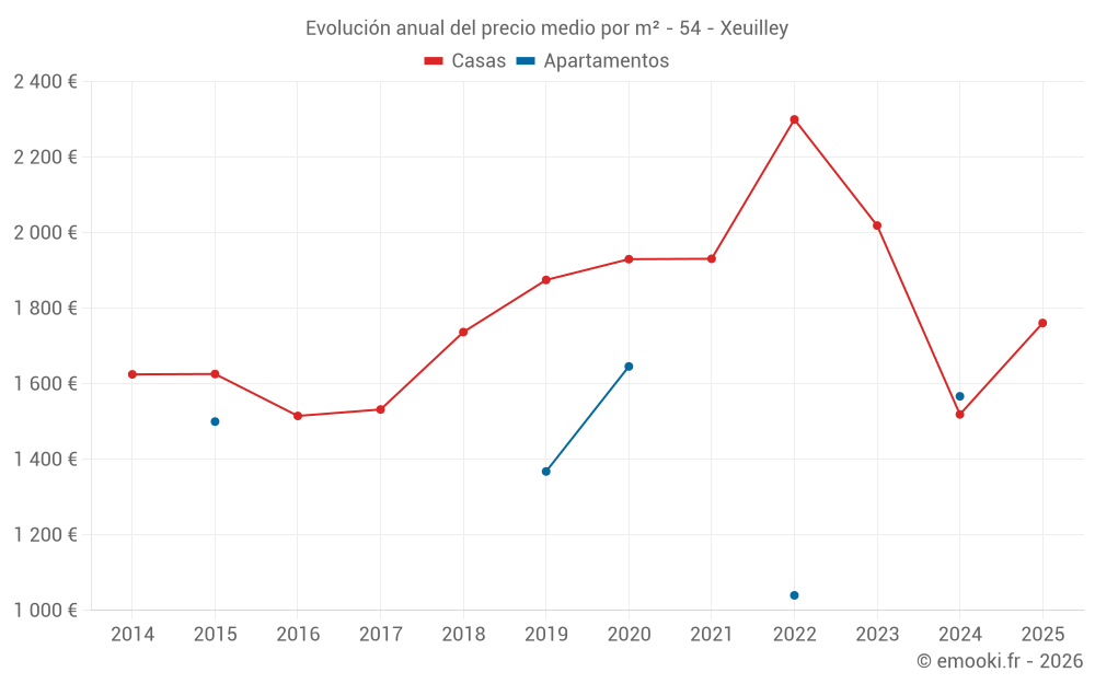 ¿Cuál es el precio por m2 de las casas en Xeuilley?