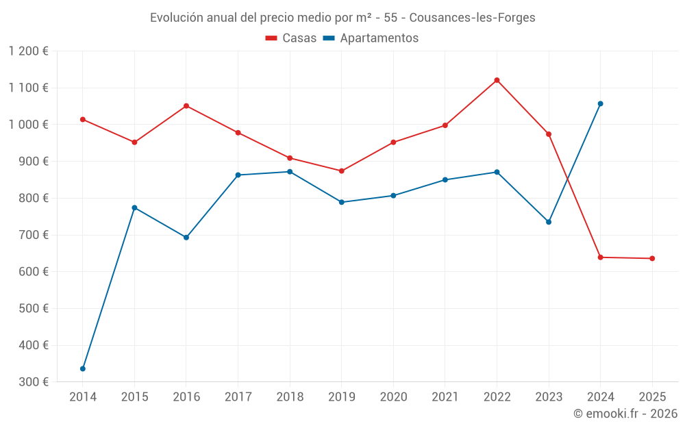 ¿Cuál es el precio por m2 de las casas en Cousances-les-Forges?