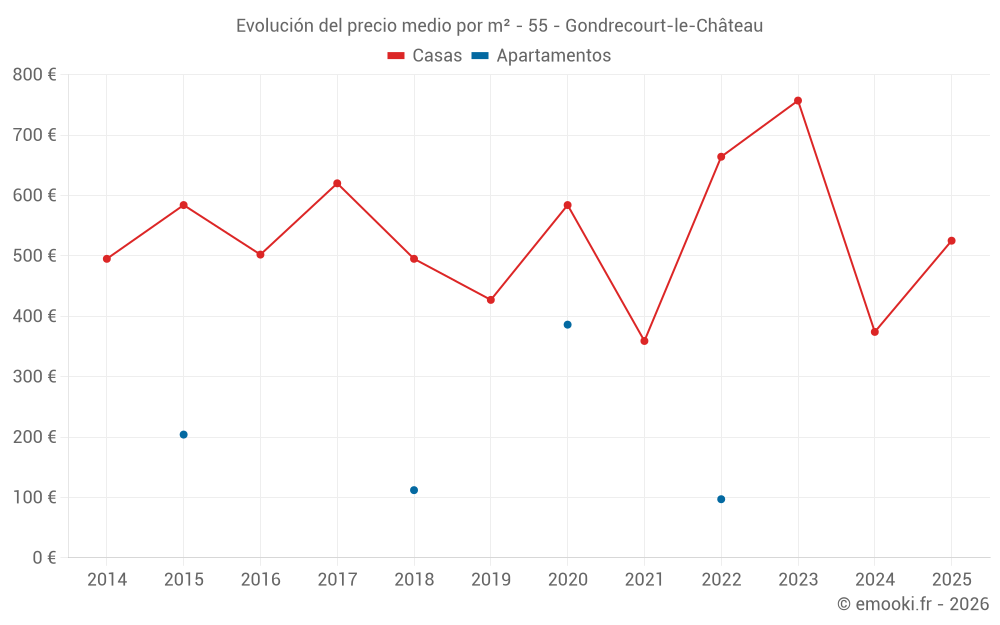 El precio mediano en las 18 transacciones de casas de los últimos 24 meses en la comuna de Gondrecourt-le-Château fue de 486 € por metro cuadrado para un valor patrimonial medio de 43 000 €. Durante este período el 60% de las transacciones estuvieron entre 233 y 709 € por metro cuadrado (del 2º al 8º decil).