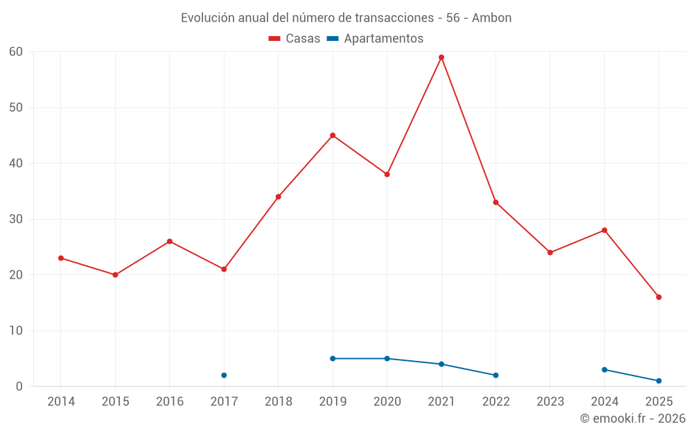 El precio mediano en las 28 transacciones de casas de los últimos 12 meses en la comuna de Ambon fue de 2 842 € por metro cuadrado para un valor patrimonial medio de 217 250 €. Durante este período el 60% de las transacciones estuvieron entre 2 042 y 3 156 € por metro cuadrado (del 2º al 8º decil).