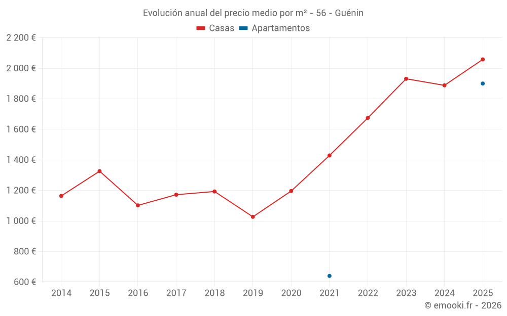 ¿Cuál es el precio por m2 de las casas en Guénin?