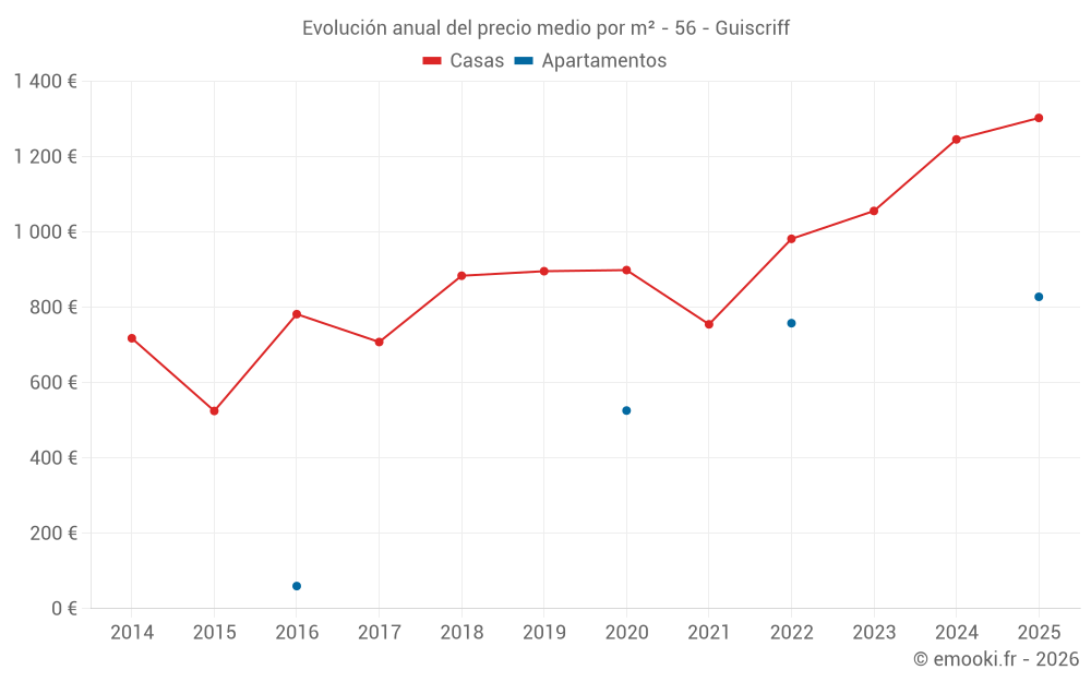 ¿Cuál es el precio por m2 de las casas en Guiscriff?