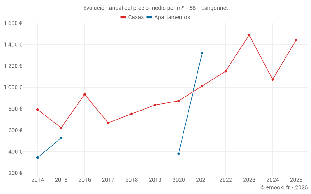 ¿Cuál es el precio por m2 de las casas en Langonnet?