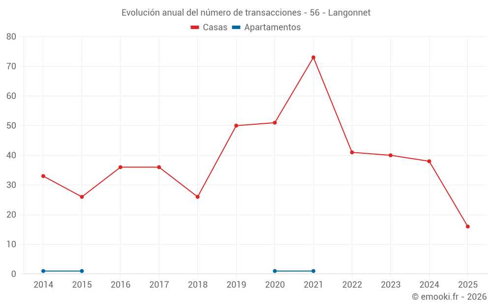 El precio mediano en las 37 transacciones de casas de los últimos 12 meses en la comuna de Langonnet fue de 1 223 € por metro cuadrado para un valor patrimonial medio de 90 000 €. Durante este período el 60% de las transacciones estuvieron entre 705 y 1 762 € por metro cuadrado (del 2º al 8º decil).