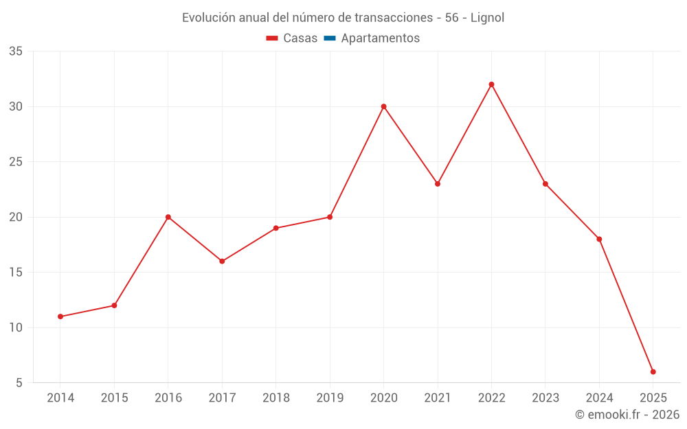 El precio mediano en las 17 transacciones de casas de los últimos 12 meses en la comuna de Lignol fue de 1 264 € por metro cuadrado para un valor patrimonial medio de 103 000 €. Durante este período el 60% de las transacciones estuvieron entre 802 y 1 622 € por metro cuadrado (del 2º al 8º decil).