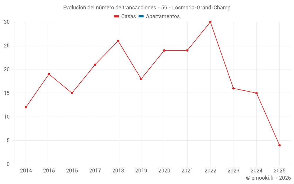 El precio mediano en las 27 transacciones de casas de los últimos 24 meses en la comuna de Locmaria-Grand-Champ fue de 2 641 € por metro cuadrado para un valor patrimonial medio de 260 000 €. Durante este período el 60% de las transacciones estuvieron entre 2 058 y 3 104 € por metro cuadrado (del 2º al 8º decil).